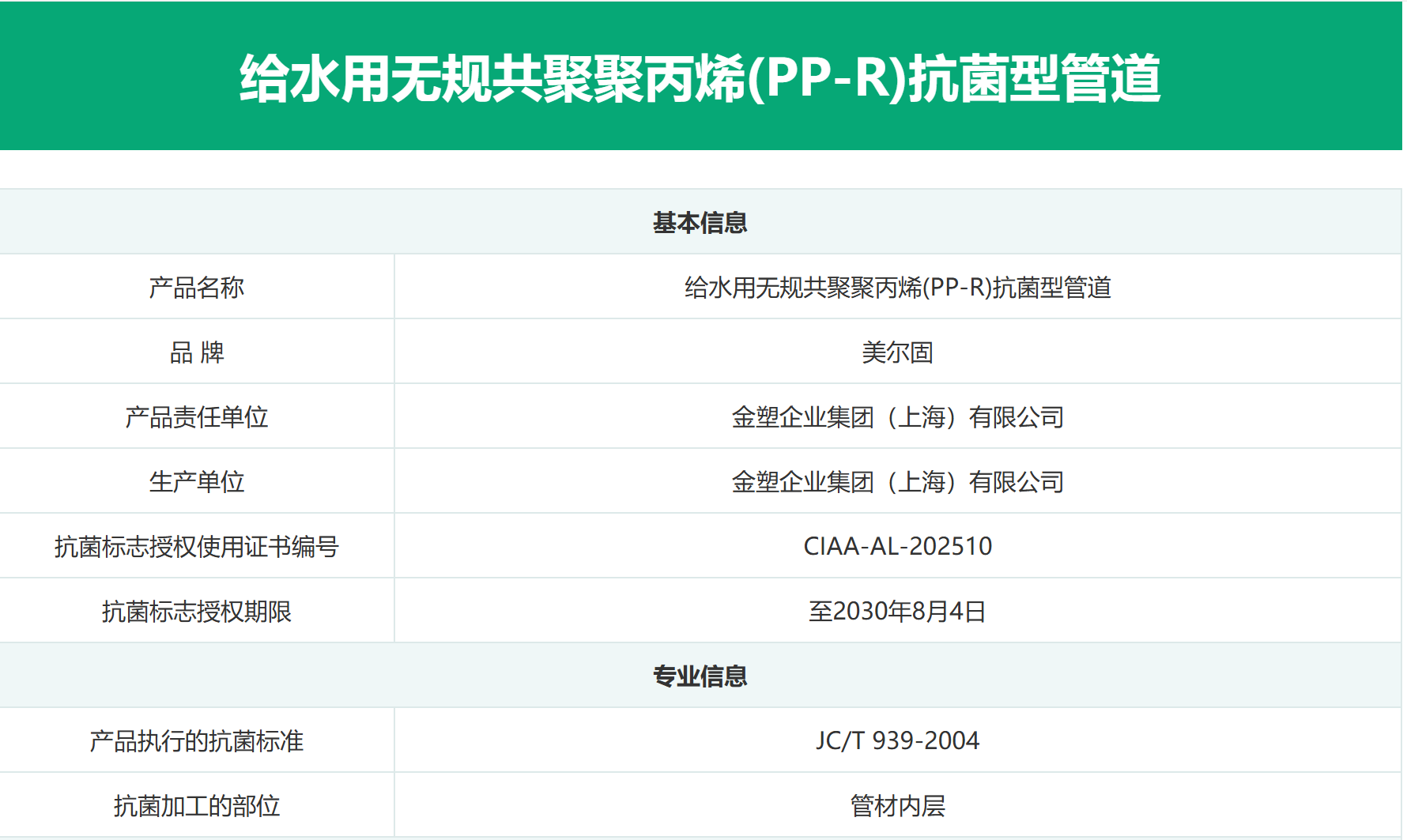 抗菌PP-R管性能引領業(yè)界追求,金塑企業(yè)集團(上海)有限公司獲得抗菌標志使用授權